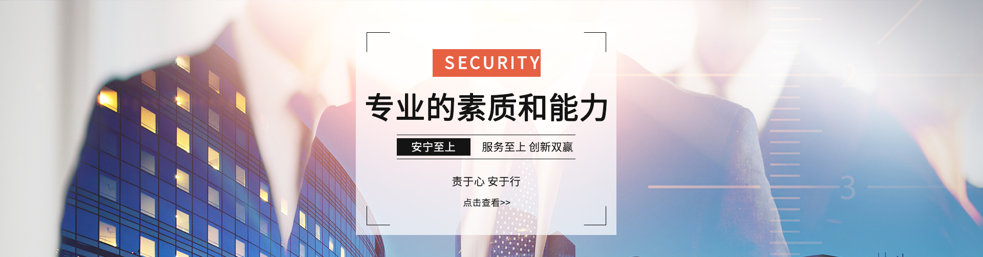 公司始終堅持“務(wù)實、求精、效益、創(chuàng)新”的質(zhì)量方針,奉行“維護(hù) 雇主事業(yè)管理秩序,捍衛(wèi)雇主事業(yè)運(yùn)營安全,致力于雇主事業(yè)長期發(fā)展的保駕護(hù)航”服務(wù)宗旨,不斷加強(qiáng)公司管理層和員工隊伍建設(shè),以專業(yè)化、標(biāo)準(zhǔn)化的優(yōu)質(zhì)高效的服務(wù)質(zhì)量為各企事業(yè)單位提供專業(yè)的安全保衛(wèi)及物業(yè)管理服務(wù)。